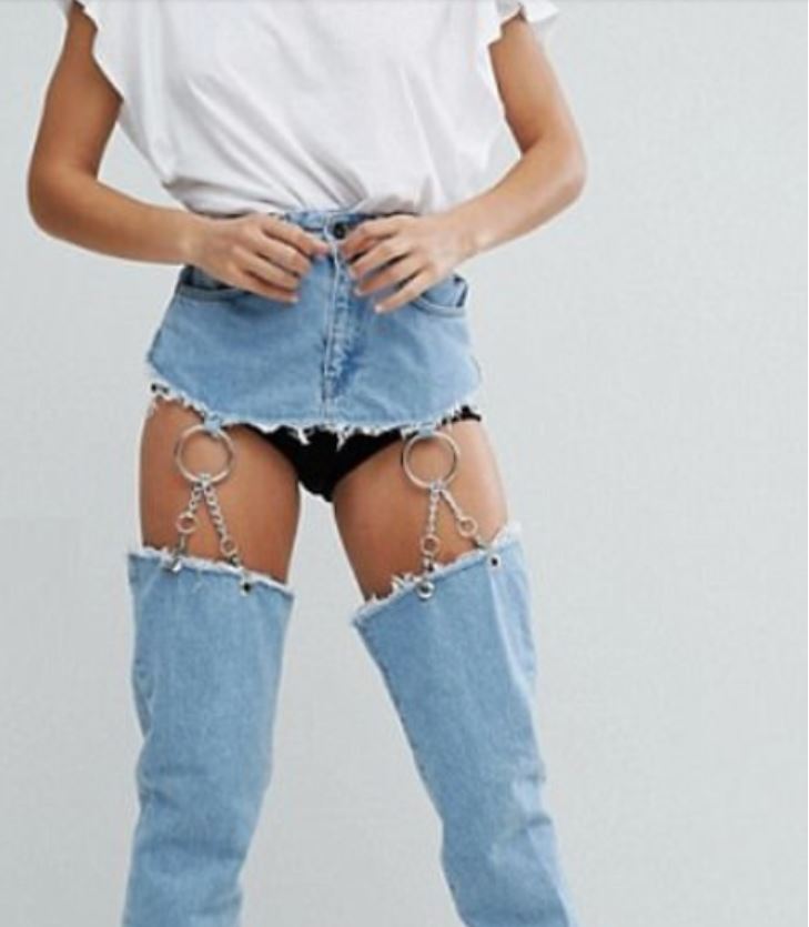 Designerii si-au descris propriul produs ca si: „o pereche de blugi cu talie inalta cu decupaje mari in fata si in spate”. Ce-i drept, acesti au buzunare, deci ai unde sa iti pui banii si cheile, daca nu ai poseta.