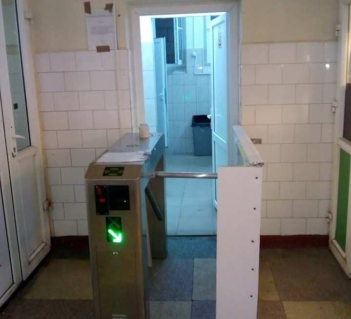 O fotografie cu un aparat de taxat, identic cu cel de la metrou, a fost instalat la o toaleta publica dintr-o piata!...