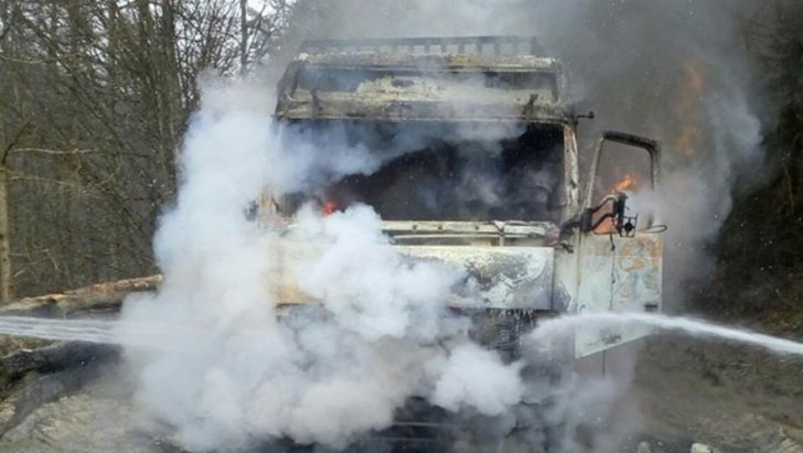 Un TIR încărcat cu 22 de tone de azotat de amoniu a luat foc, joi seara, în Pasul Tihuţa, traficul fiind blocat...